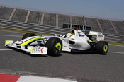 co nejtěsnější demonstrativní dojezd v Indianapolis a Barrichello o pár centimetrů vyhrál..